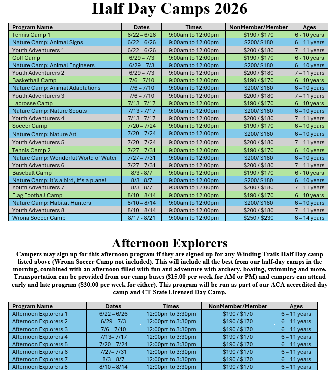 REGISTRATION FOR HALF-DAY CAMPS WILL OPEN ON MONDAY, FEBRUARY 9TH